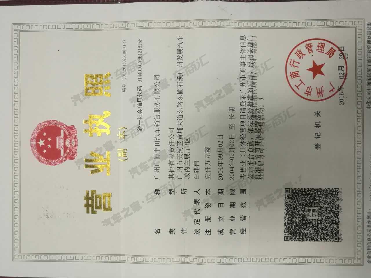 广州广博丰田汽车销售服务有限公司是经一汽丰田汽车(中国)销售有限公司授权的丰田汽车经销店(4S店),位于广州市天河区汇彩路8号(地铁五号线三溪B出口.宜家隔壁)。公司集汽车维修、汽车销售、丰田纯牌零件供应等三位一体的现代化的汽车销售服务中心,占地面积一万多平方米。