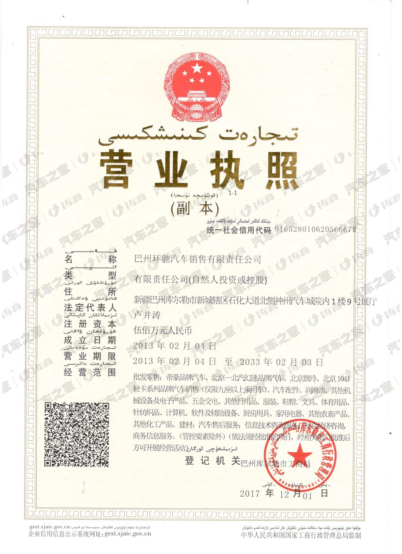 库尔勒市新城辖区石化大道北侧神州汽车城院内1楼9号展厅