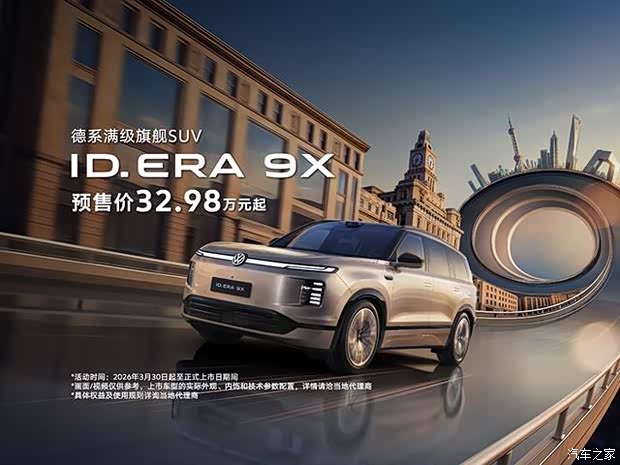 3 月 30 日,上汽大众在深圳迎来新能源战略重磅时刻,旗下 “德系满级旗舰 SUV” ID. ERA 9X 正式开启预售,以 Pro、Max、Ultra 三款全系四驱车型布局市场,预售价分别为 32.98 万元、35.98 万元、37.98 万元。作为上汽大众 “合资 2.0” 战略下的核心力作,新车深度融合德国百年造车工艺底蕴与中国本土前沿智能科技,凭借 “全系满配、全域胜任、全维智能” 的硬核产品力,加冕 “增程新王”,强势重构中高端增程 SUV 市场竞争格局,为消费者打造兼具品质、科技与情怀的旗舰出行体验。