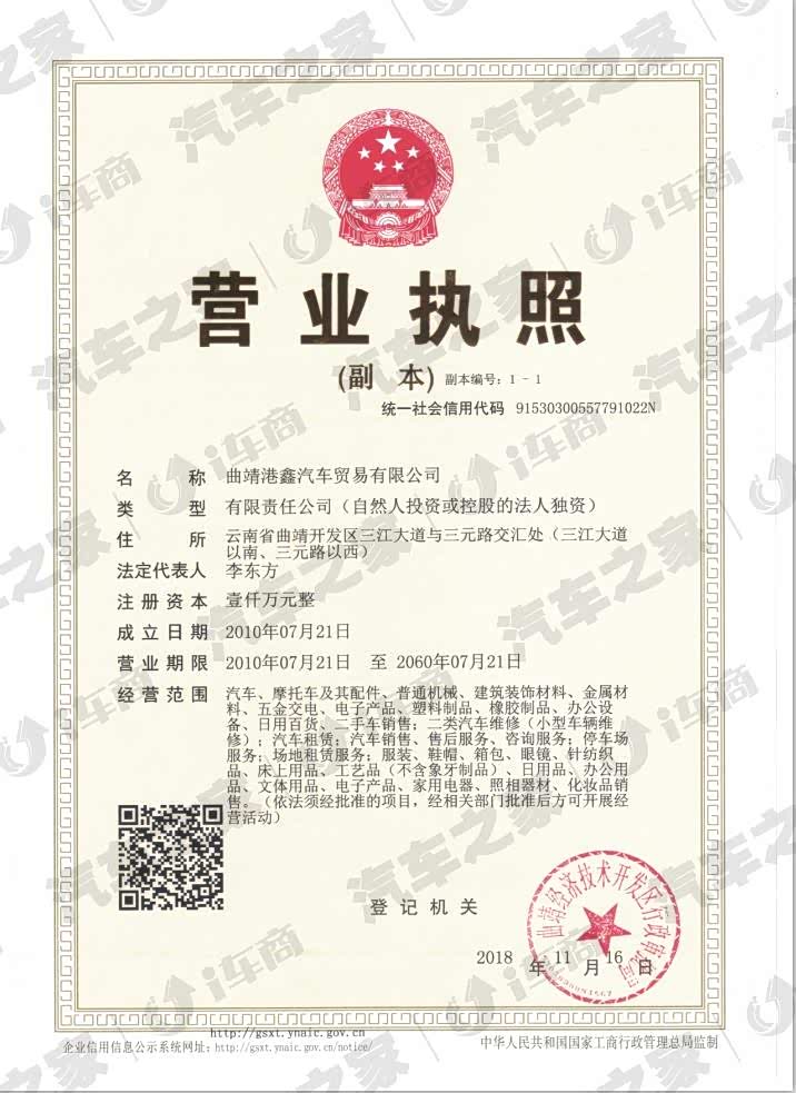 曲靖港鑫汽车贸易有限公司(国有混合所有制企业)成立于2010年7月,其前身是云南港鑫实业有限公司曲靖分公司,分公司成立于2005年5月,公司入驻曲靖汽车销售服务市场二十年,为曲靖较早的汽车销售服务商,在曲靖汽车销售服务行业中取得了长足的发展。公司是以汽车产业为主的专业化销售服务公司,公司拥有曲靖市长丰猎豹、广汽三菱、领克、吉利全系汽车总代理权。经过近20年的艰苦创业和发展,公司已拥有3个国际标准的4S店,3000余平米的4S维修厂区,二十余家分销网络及维修网点辐射曲靖各县份。目前公司实现年度整车销售2000余台,年维修产值1000余万;结合当前汽车消费市场及未来发展趋势,2014年年底经昆明市国有资产监督管理委员会批复同意斥资7000余万元打造曲靖港鑫汽车超市,该项目占地26亩,位于曲靖国家级经济技术开发区西片区产业园区内,是曲靖开发区招商引资重点项目。项目预计2016年5月正式建成投入使用;建筑面积25000平米,建成后是集各品牌汽车整车销售、售后服务、汽车金融保险服务、二手车交易等多项功能为一体的大型汽车超市。