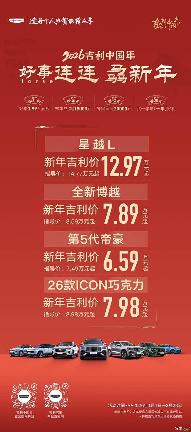 吉利中国年 好车吉利价3.99万元起