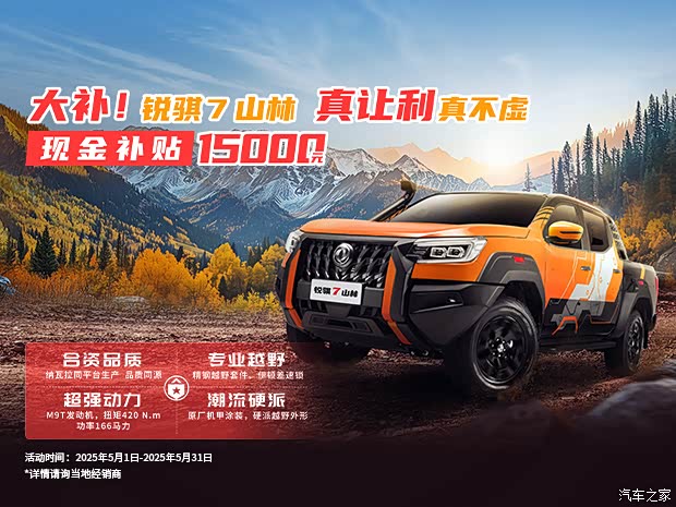 开工迎盛“惠” 购车“郑”当时 近日,本店内有锐骐7 销售,现金补贴1.5万元(柴油版);锐骐7虎啸,皮卡置换 至高补贴2万元;颜色可选,感兴趣的朋友可以到店咨询购买,详情见下表:锐骐7(柴油版):现金补贴15000元锐骐7虎啸:皮卡置换 至高补贴20000元