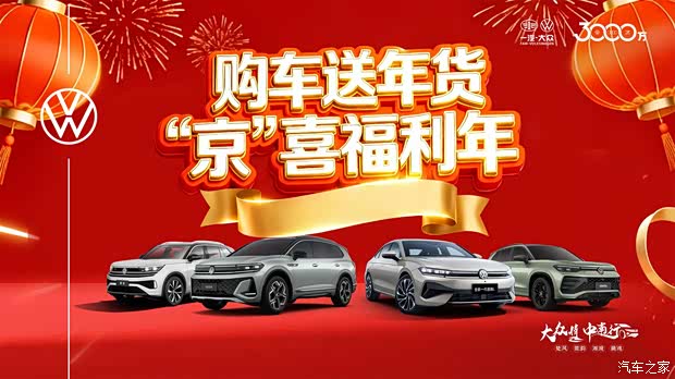 随着春节临近,“返乡出行” 与 “年货采购” 成为大众核心消费需求。一汽 - 大众推出「购车送年货・‘京’喜福利年」专项活动,以新春购车四重礼为核心,叠加国补与厂补双重红利,打造 “购车 + 年货” 的双重消费场景,为消费者提供 “开新车、办年货、享优惠” 的一站式解决方案,活动截止至 1 月 25 日。