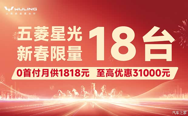 云南中机联合五菱厂家新年搞“大事件”五菱星光元宵限量18台特价车,至高现金优惠31000元,7.18W中型家轿开回家