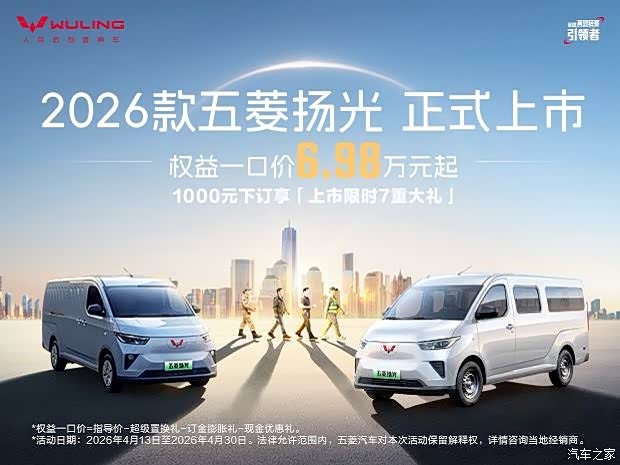 高效可靠,创富好帮手!新能源轻客销冠五菱扬光家族迎来焕新升级——2026款五菱扬光正式预售。作为高效创富轻客,新车实现了“续航、动力、智能”三大维度升级,以“只加码不加价”的诚意定价与越级产品力,定义新能源高效轻客标准,致力于成为城配市场货运司机群体的创富首选。