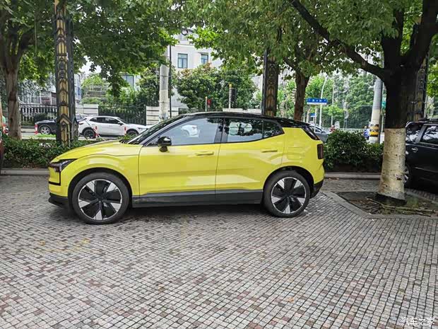 车身侧面,EX30并没有像这个级别很多SUV一样突出运动感,撞色的车顶带有一丝时尚感,但总体来看它的侧面线条平直柔和,并不锋锐,唯有C柱的窗线进行了上扬的处理,轴距 为2650mm。