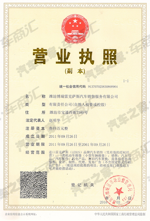 潍坊博瑞雷克萨斯汽车销售服务有限公司