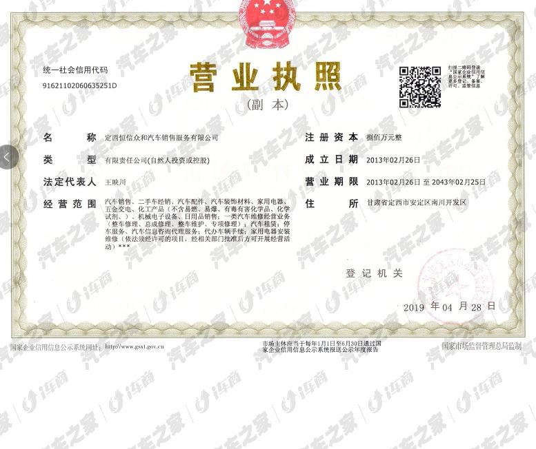 定西恒信众和汽车销售服务有限公司隶属于恒信汽车集团。恒信汽车集团,连续多年荣获“中国汽车流通行业杰出贡献奖”、“中国汽车流通行业企业品牌最具影响力奖”、“中国汽车流通行业卓越贡奖”及“社会责任公益奖” ,年销售收入超过800亿元,中国汽车经销商集团百强排名第五名,中部地区第一,位列中国企业500强第297位、中国民营企业500强第127位、湖北省前三。