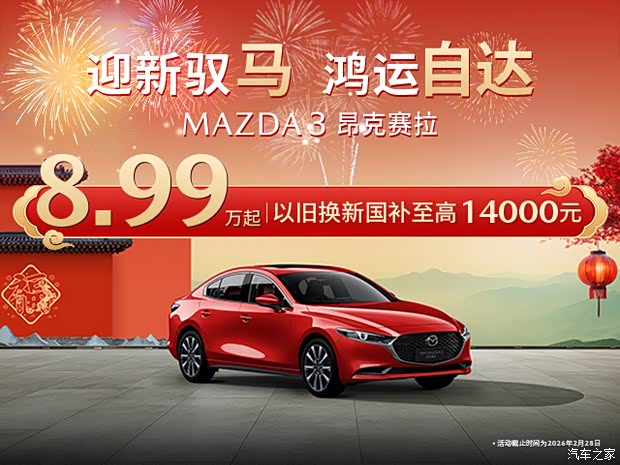 日起,次世代MAZDA3昂克赛拉推出限时惊喜,官方起售价8.99万元,更可叠加享受国家以旧换新补贴至高14,000元。双重力度的礼遇,让标志性的魂