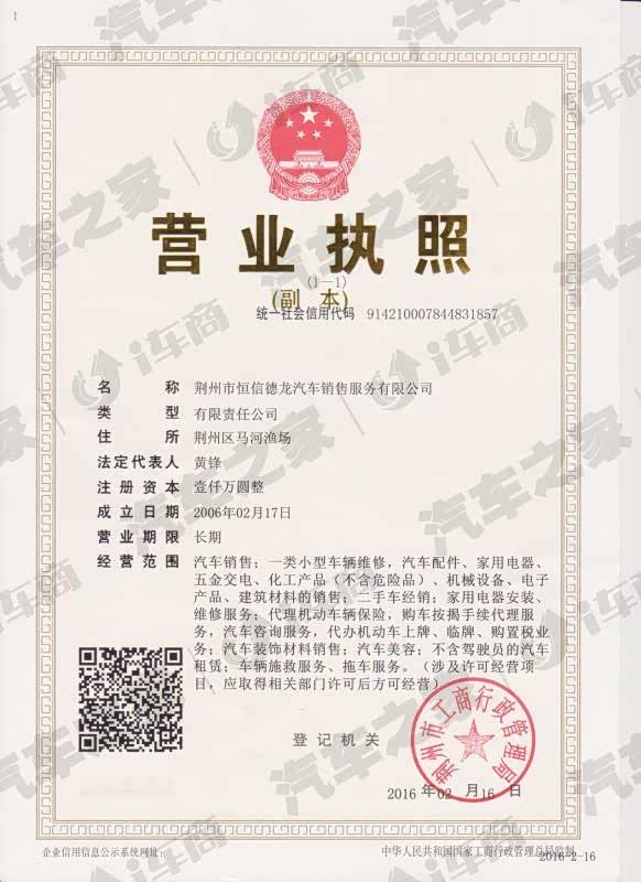 荆州市恒信德龙汽车销售服务有限公司