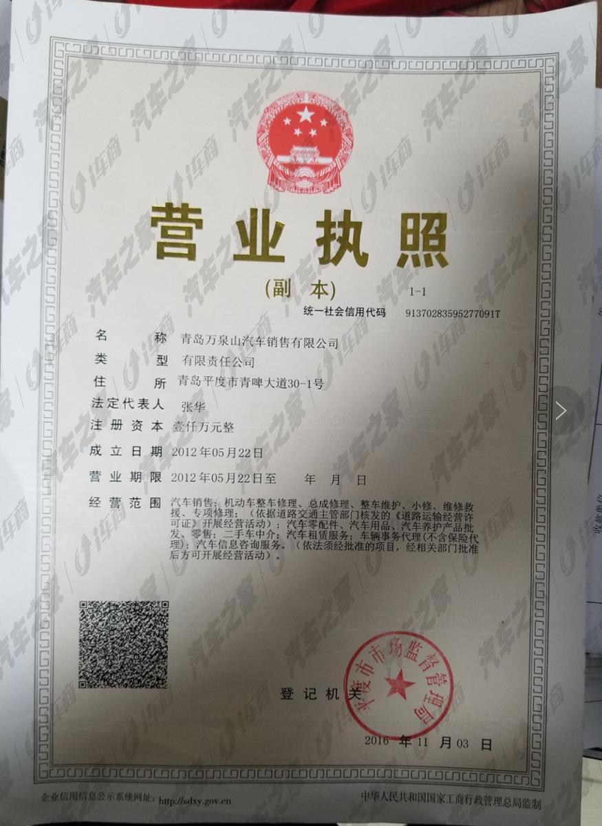 东风日产平度万泉山专营店于2012成立,2012年9月正式通过验收。严格按照东风日产乘用车有限公司所采用的国际先进的“整车销售、售后服务、零配件供应及信息反馈”四位一体建成的4S专营店。专营店位于山东省青岛平度市,占地面积万余平方米,注册资本柒佰万元人民币,目前共有九8个部门:行政部、财务部、市场部、销售部、售后服务部、数字营销中心、二手车部、金融保险部员工90余人。