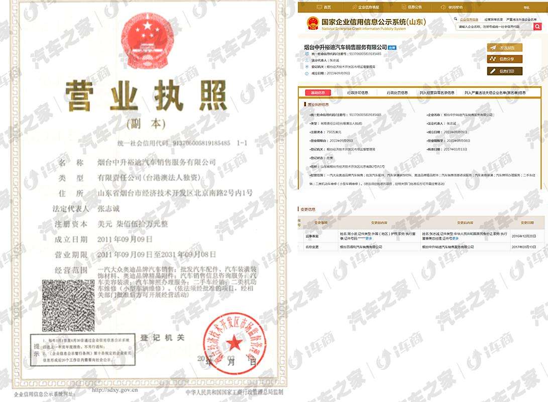 烟台中升裕迪汽车销售服务有限公司