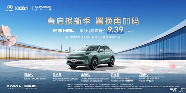 当产品力足以承载对美好出行的向往,政策的加持则让这份向往触手可及。即日起至3月31日,哈弗H6L推出限时购车权益: