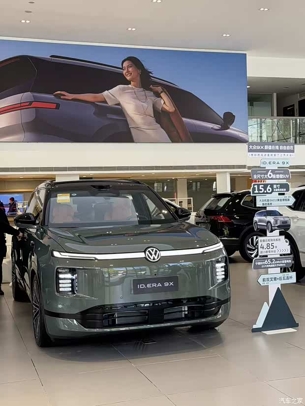 上汽大众首款德系大 6 座增程 SUV——ID. ERA 9X 实车已正式到店,诚邀您莅临品鉴! 作为大众 9 系旗舰车型,新车以 5207mm 越级车长、3070mm 超长轴距,打造 2+2+2 宽适六座布局,第二排独立航空座椅,三排均享从容空间。搭载黄金增程系统,纯电续航超 400km,综合续航破 1000km,无里程焦虑。德系精准底盘调校、智能数字底盘与豪华科技座舱兼备,兼顾操控、舒适与安全,重新定义中大型新能源 SUV 标杆。 现车已到店,欢迎莅临赏车、试驾,亲身感受德系旗舰魅力!
