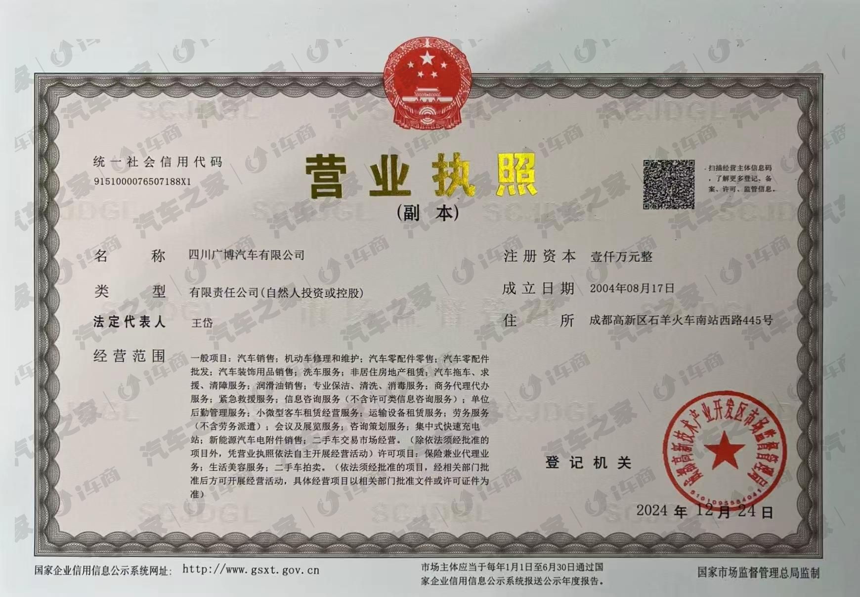 自此,四川广博成为了集整车销售、维修、金融按揭、保险服务、二手车评估和置换等一体式汽车服务经销商。