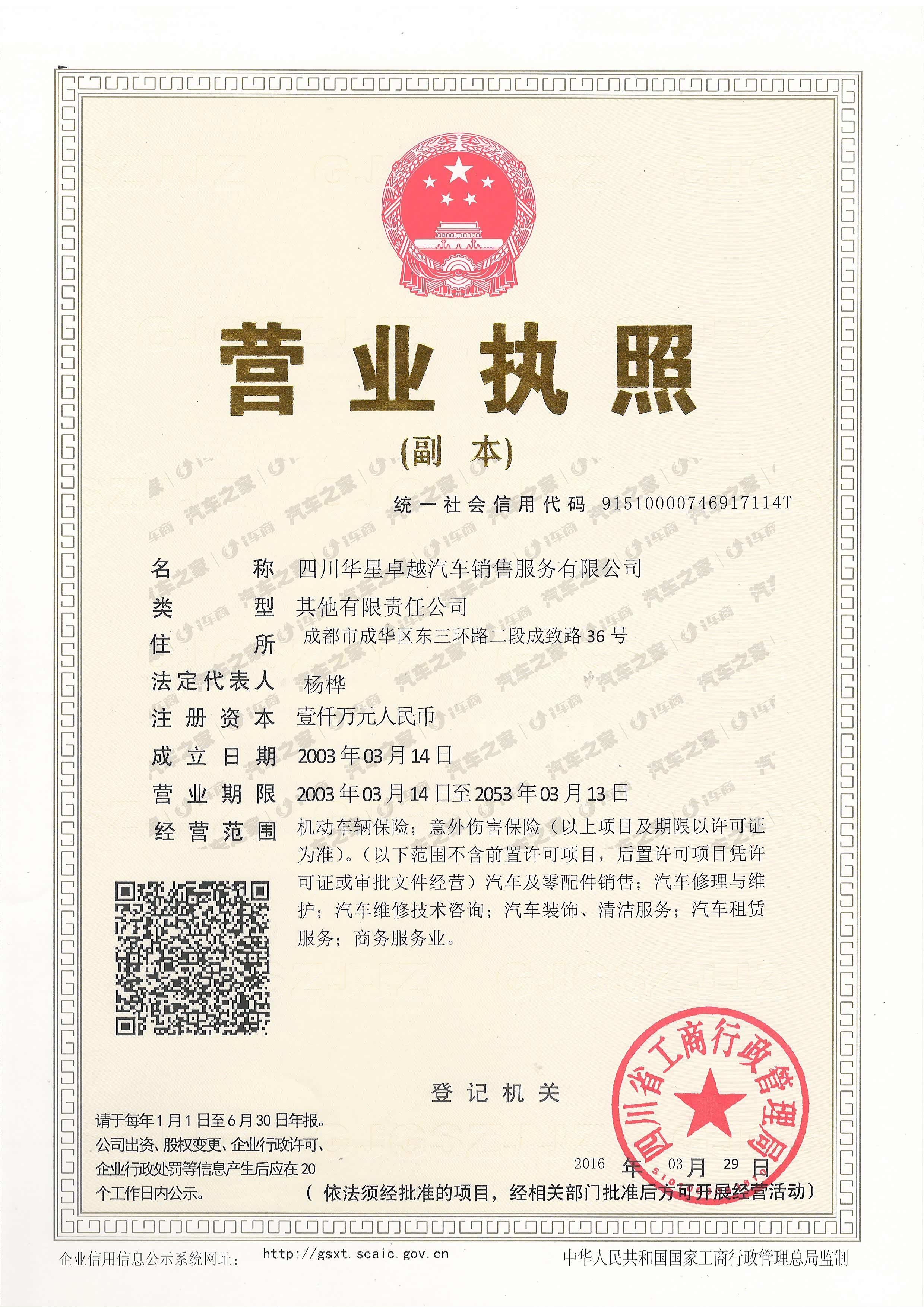 四川华星卓越汽车销售服务有限公司