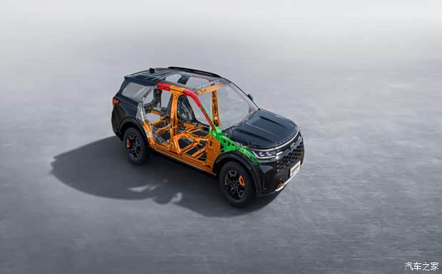 真正的安全不是配置的简单堆砌,而是整个车身架构的安全进化。探险者采用高强度笼式车身结构,1300MPa以上高强度钢占比高达38.6%,A柱和顶盖边梁更应用了同级的1700MPa冷萃马氏体钢,打造出堪比装甲车的坚固防护框架。此外,纵向强化液压成型ShotGun结构在碰撞时会先于刚性避障进行接触,提升25%偏置碰撞时的安全保障,再配合CBS加强膨胀结构胶块,使传统“空心”腔体转变为“实心”装甲,车身抗扭刚度提升30%,极大程度提高了自身的抗撞击安全性。