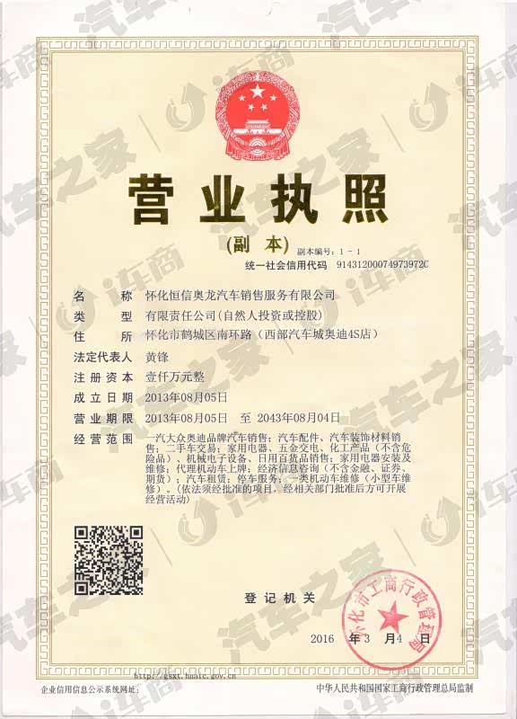 怀化恒信奥龙汽车销售服务有限公司隶属于恒信汽车集团。恒信汽车集团,连续多年荣获“中国汽车流通行业杰出贡献奖”、“中国汽车流通行业企业品牌最具影响力奖”、“中国汽车流通行业卓越贡奖”及“社会责任公益奖” ,年销售收入超过800亿元,中国汽车经销商集团百强排名第五名,中部地区第一,位列中国企业500强第297位、中国民营企业500强第127位、湖北省前三。
