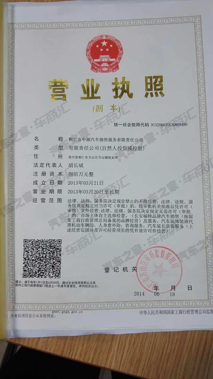铜仁市中源汽车销售服务有限责任公司