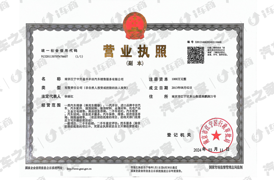 南京江宁中升盈丰丰田汽车销售服务有限公司