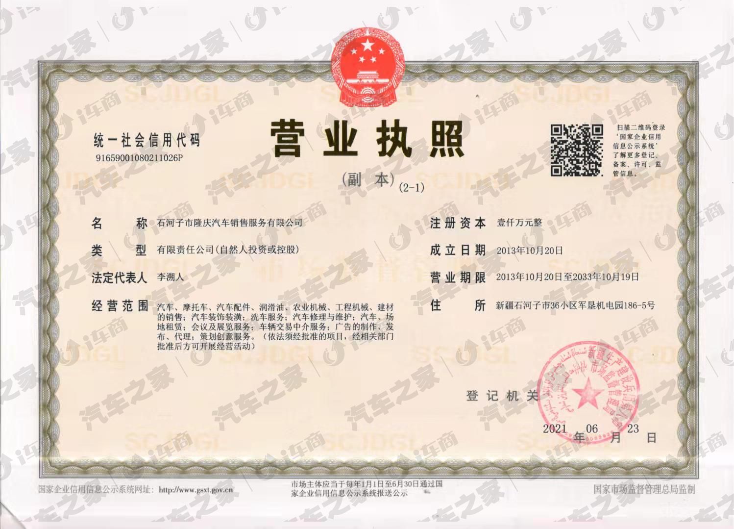 石河子市隆庆汽车销售服务有限公司