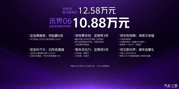 5月20日,神龙汽车自主新能源品牌“HEDMOS示界”首款车型示界06正式上市,法系知音限时先享价10.88万元。新车标配即满配,全面刷新A+级纯电SUV市场标准。同时,为感恩650万法系知音用户33年的陪伴,神龙汽车还为广大用户推出限时至高价值39,000元上市礼遇,用户可通过示界官方小程序即刻下订。