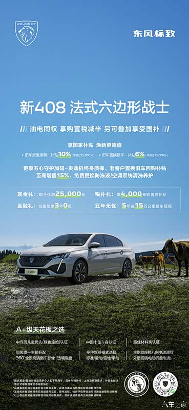 作为一款“法式六边形战士”,东风标致新408龘龘款在环保用料、黄金动力组合、智能驾控、安全护航等方面都全面领先同级,被誉为是“A+级天花板之选”,赢得了众多消费者的青睐。