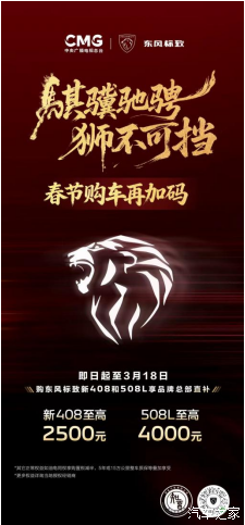春节的脚步越来越近,东风标致为广大消费者送上一份诚意满满的购车年礼。即日起至3月18日,东风标致开启限时购车补贴政策,覆盖“法式六边形战士”新408与驾控旗舰508L两款核心车型,补贴金额至高4000元。岁末年初购车正当时,品牌直补、真金白银,东风标致以满满诚意,让更多消费者轻松开启法式品质生活的新旅程。