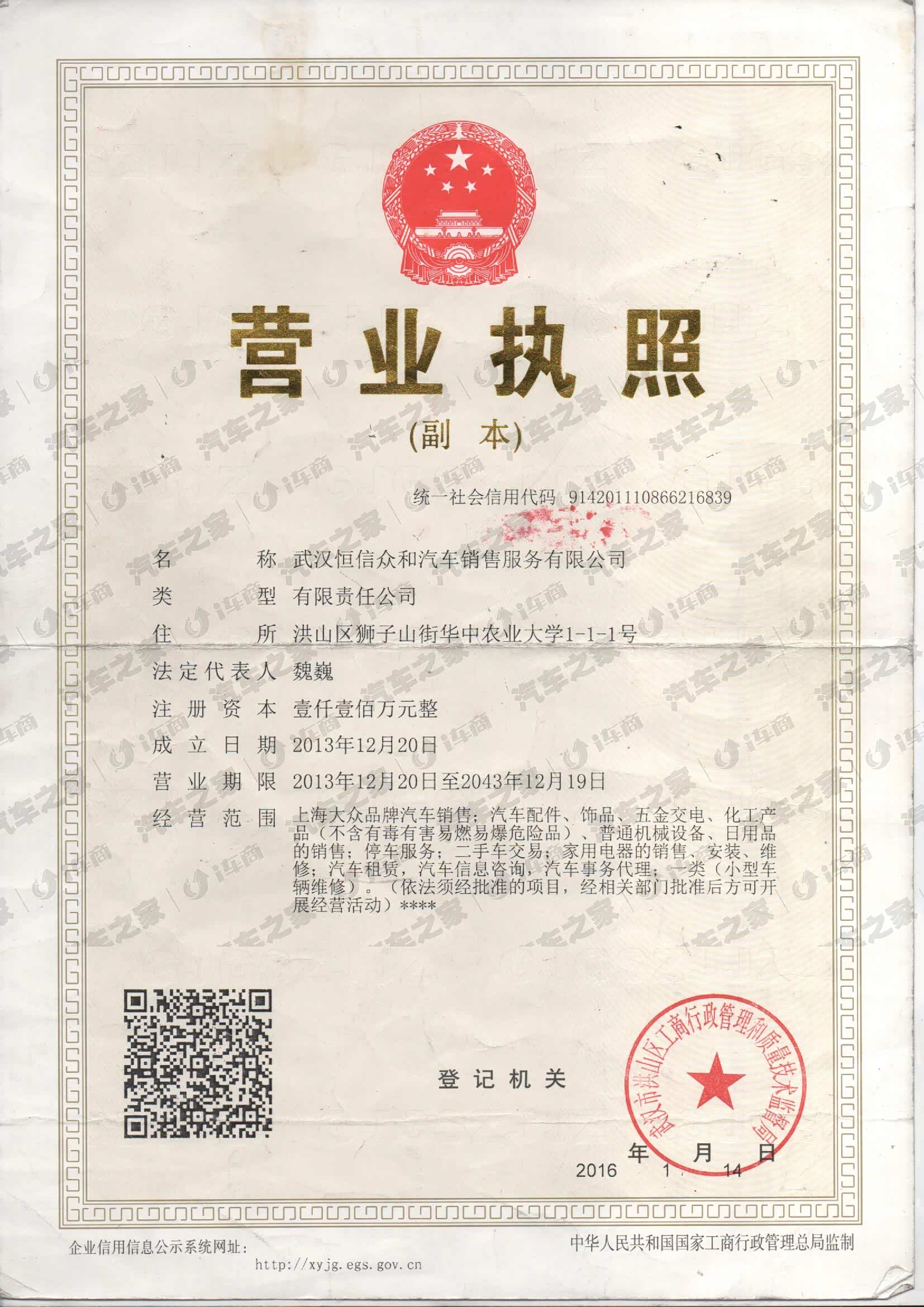 上汽大众武汉恒信众和店