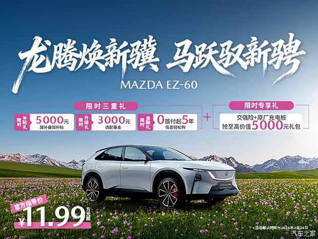 为答谢新老客户,长安马自达特推出新春团购季,即日起至2026年3月20日下订购买长安马自达EZ-60车型,叠加国补还可享限时五重礼!