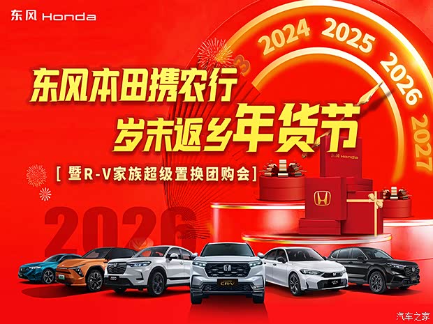 东风本田携农行岁末返乡年货节---暨R-V家族超级置换团购会!限时特惠狂欢,福利层层叠加,低息超长贷超划算!即日起到店购车,多重礼遇享不停,惊喜好礼等你解锁!