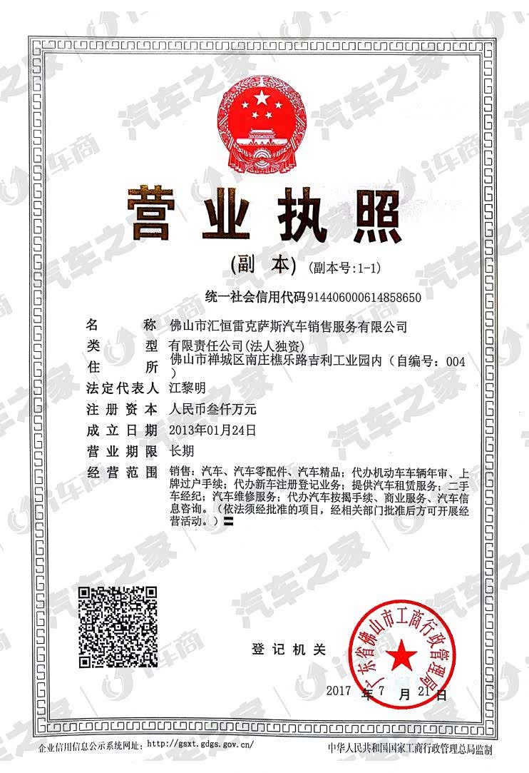 佛山市汇恒雷克萨斯汽车销售服务有限公司,简称佛山汇恒雷克萨斯,隶属于全国汽车经销商集团百强利泰集团。