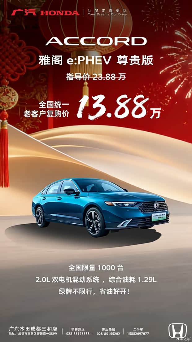 雅阁插混尊贵版,老客户复购价13.88,全国限量1000台