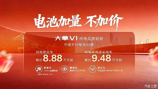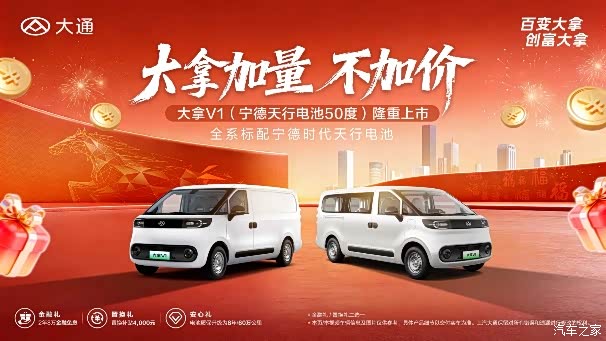 大通打响马年新车发布第一枪!大拿V1(宁德天行电池50度)震撼上市,加量不加价掀创富新风潮
