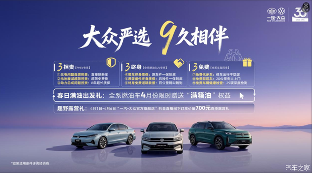 这个春天,一汽-大众以 #大众严选 9久相伴 为主题,为您和家 人的每一次出行,送上最贴心的守护。