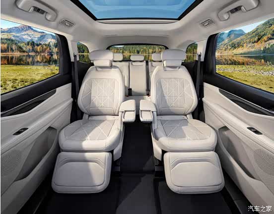 2-2-3布局的重点在第二排,两个独立头等舱座椅,带通风、加热,能一键切换成零重力模式,扶手还能收起,留出200毫米宽的中央通道,成年人侧身过毫无压力。