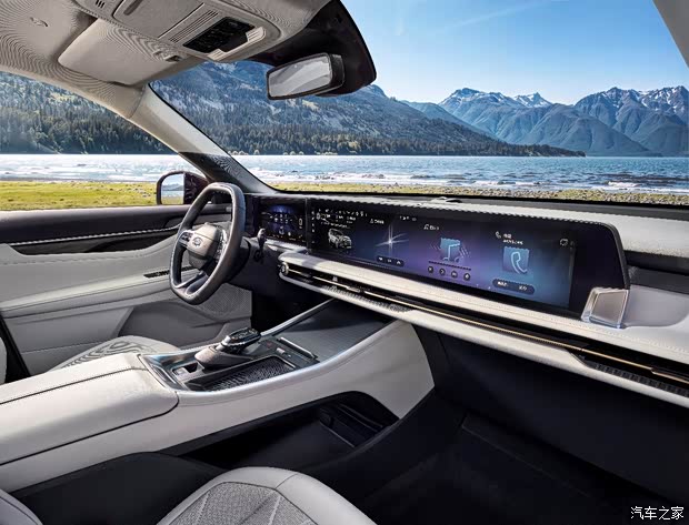 坐进锐界L的驾驶室,最吸睛的莫过于那块27英寸的超广域4K巨幅屏。这块屏幕从主驾一直延伸到副驾,配合12.3英寸的全液晶仪表,科技感直接拉满。车机系统搭载了SYNC+2.0智行互联系统,操作流畅度堪比智能手机,语音识别率极高,说一句“我冷了”,空调温度自动调节。
