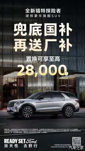 现在正是入手的时机!虽然福特探险者2.3T的排量不在国家补贴范围内,但福特厂家这次直接自掏腰包,诚意拉满! 3月份购买探险者,置换至高可享28,000元补贴,还额外赠送终身免费基础保养。这力度,可以说是把性价比做到了极致。