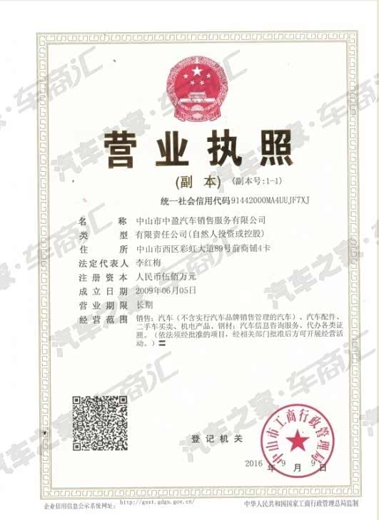 中山市中盈汽车销售服务有限公司