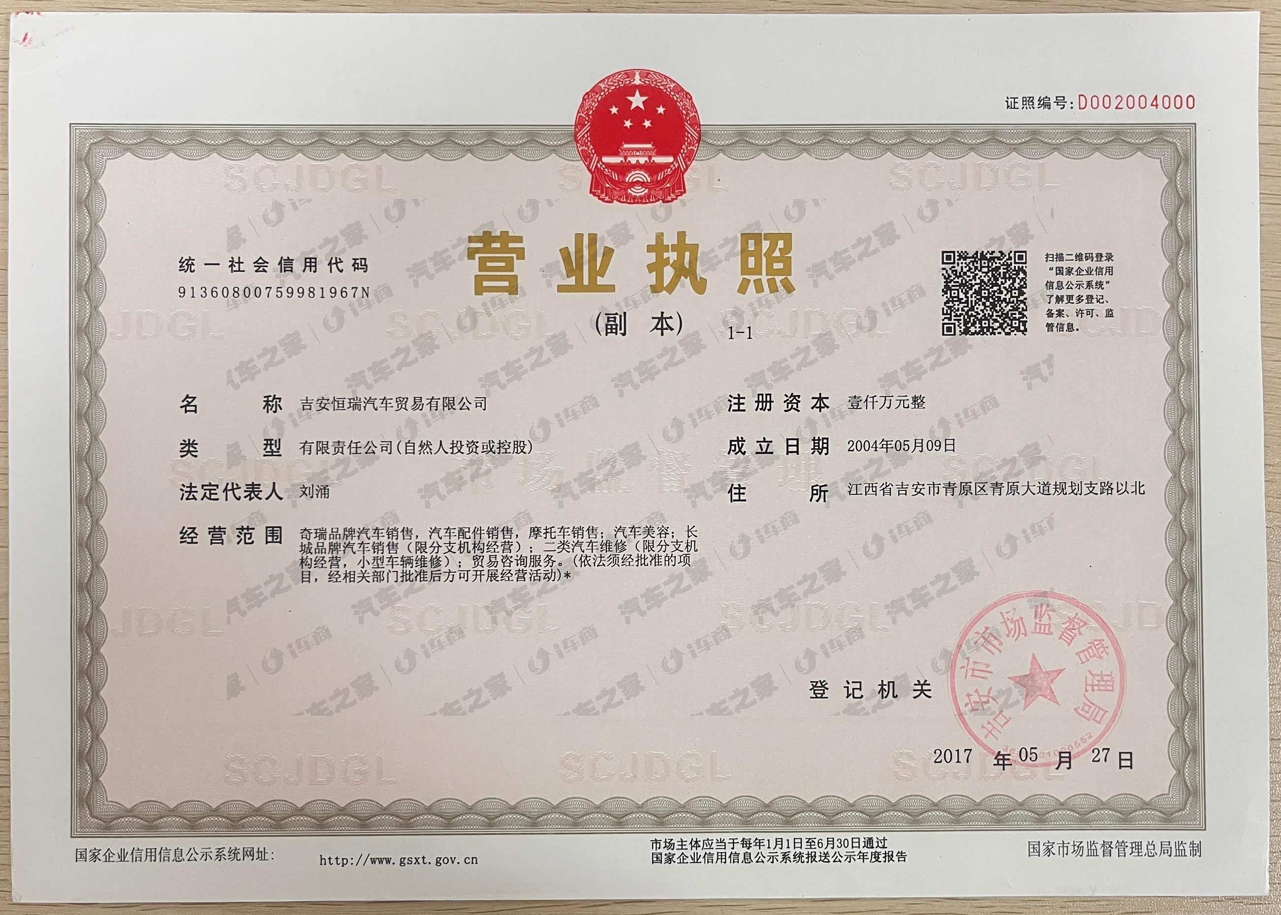 吉安恒瑞汽车贸易有限公司