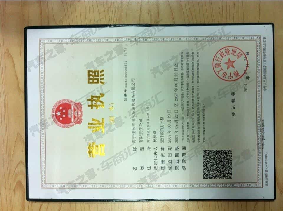 本公司成立于2007年8月,正式营业时间为2009年4月,是一汽丰田在嘉兴地区建店规模、设施最大的授权特许经销商。公司位于市海宁经济开发区佳丰路1号,注册资本1200万元,占地面积8089平方米,建筑面积9613平方米,现有员工近百人。