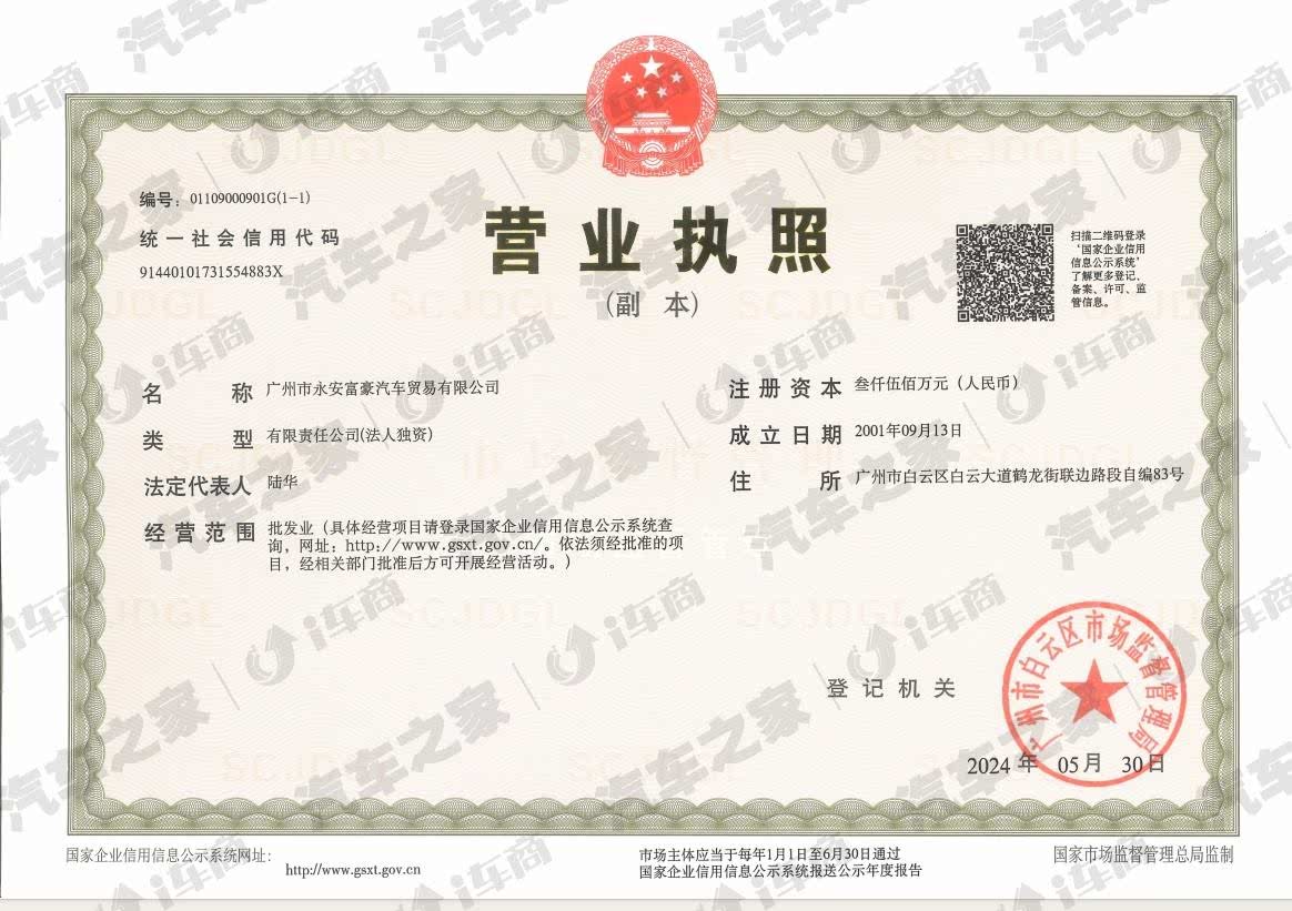 广州市永安富豪汽车贸易有限公司隶属北京惠通陆华集团旗下沃尔沃品牌经销商,自2000成立广州市永安富豪汽车贸易有限公司,并于广州下塘西路成立销售展厅;2002年,位于黄埔大道赛马场的销售展厅也隆重开业;2007年于白云大道北路段兴建沃尔沃4S中心;2009年,规划总建筑面积3500㎡的豪华展厅全面升级;2013年,店面进行第二次升级改造,晋升为当时沃尔沃最新标准的VNF展厅;时至2016年,经历第三次的店面升级改造,规划总建筑面积达5000㎡且极富北欧气息的VRE展厅顺利落成;