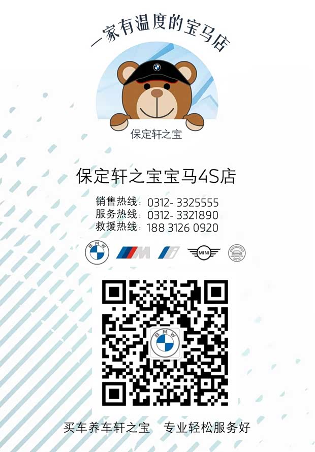 保定轩之宝秉承轩宇汽车集团德、信、和的经营理念,尊重、公平、正直、诚信的价值观,以专业品质,与您共享美好汽车生活。保定轩之宝宝马4S店全体员工竭诚为您服务。