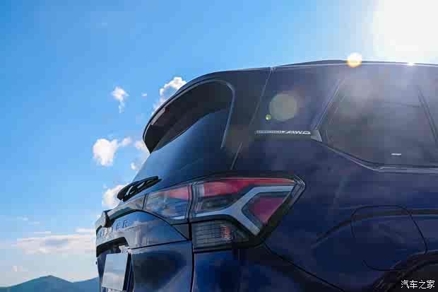 车身侧面,立体腰线从前翼子板贯穿至尾灯,搭配熏黑轮眉与19英寸双色花瓣轮毂,肌肉感爆棚。车顶行李架和车窗装饰条的熏黑处理,以及D柱上醒目的“AWD”标识,进一步强化了其四驱越野属性。车身尺寸升级为4670/1830/1730mm,220mm的最小离地间隙,结合短前后悬设计,接近角与离去角分别达到19°和23° ,复杂路况轻松应对。