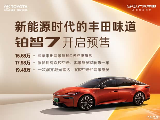 当新能源市场进入“配置与价值”双博弈的时代,广汽丰田全新旗舰纯电轿车铂智7,于3月5日正式开启预售,以15.68-20.98万元限时预售权益价,重新定义中高级纯电轿车的价值标杆 。这不仅是丰田新能源转型的诚意之作,更是一场“入门即豪华、顶配不溢价”的市场革新。
