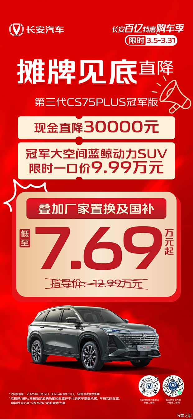 长安百亿特惠购车季“摊牌见底”第三代CS75PLUS冠军版