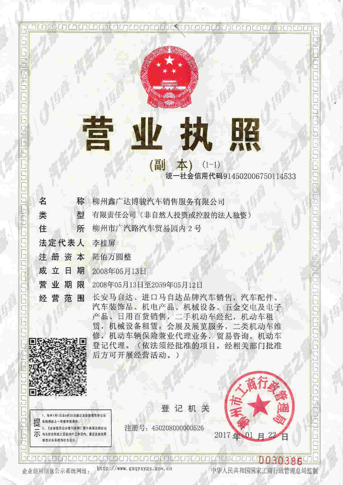 柳州鑫广达博骏汽车销售服务有限公司