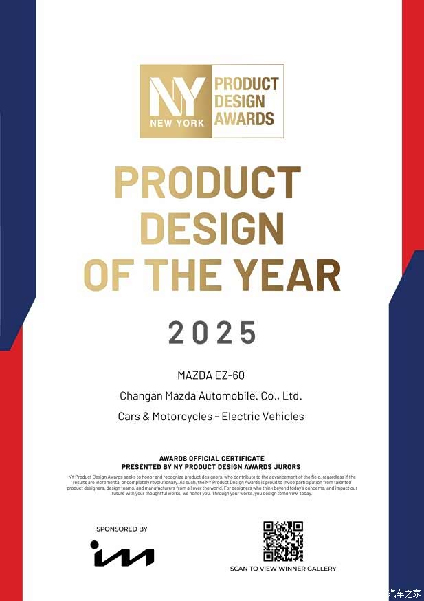 近日,九风道悦级智能SUV长安马自达MAZDA EZ-60(以下称EZ-60)再传捷报:凭借突破性的设计创新与实用美学融合,一举斩获2025年纽约产品设计奖(NY Product Design Awards)与Titan创新奖(Titan Innovation Awards)年度设计奖。此前,EZ-60已将2025缪斯设计奖·铂金奖与年度最佳设计大奖收入囊中,短短数月内包揽四项国际ding级设计荣誉,成为首个在全球四大设计赛事中实现“大满贯”的中国智造新能源SUV,以东方美学与工程智慧的完美融合,在全球设计舞台绽放璀璨光彩。