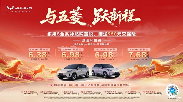 五菱缤果S全系补贴购置税!赠送950元交强险
