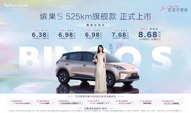 缤果S提供325km尊享款、325km旗舰款、430km尊享款、430km旗舰款、525km旗舰款五款配置,上市指导价为6.68万-8.98万元,叠加置换政策可享置换补贴价6.38万-8.68万元,更可叠加享受国家/地方购车补贴。